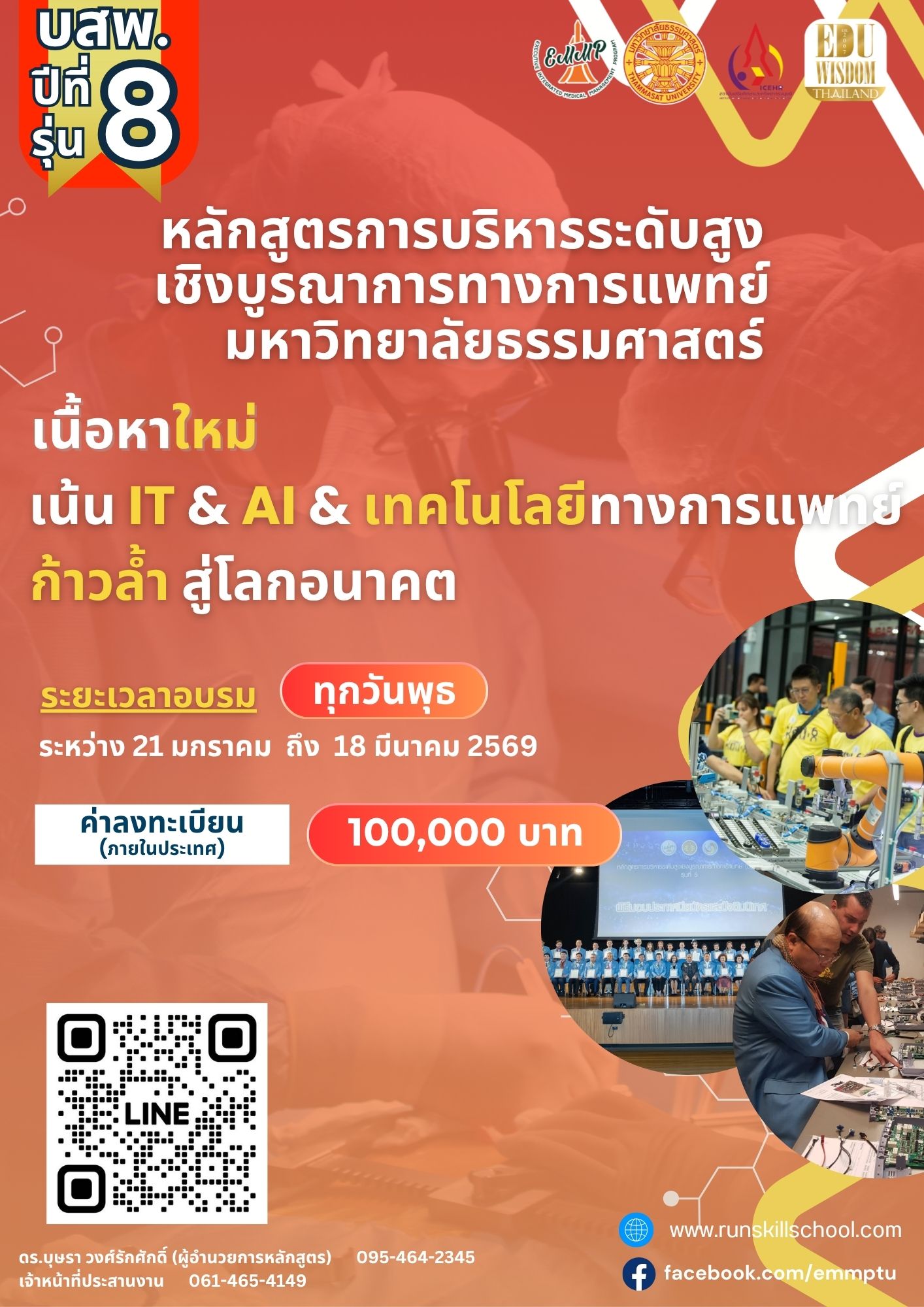 ร่วมงาน ปัจฉิมนิเทศ โครงการ หน่วยงาน Runskill School มหาวิทยาลัยธรรมศาสตร์ ได้แก่ Pre-Medical and Digital Technology ME-D (New Generation) โครงการปั้นหมอ Digital 4.0 รุ่นที่ 6 และ โครงการ วิศวะ TEN Gen รุ่นที่ 2 TEN ; TU PRE-ENGINEERING INNOVATION PROGRAM (รุ่นที่ 2)